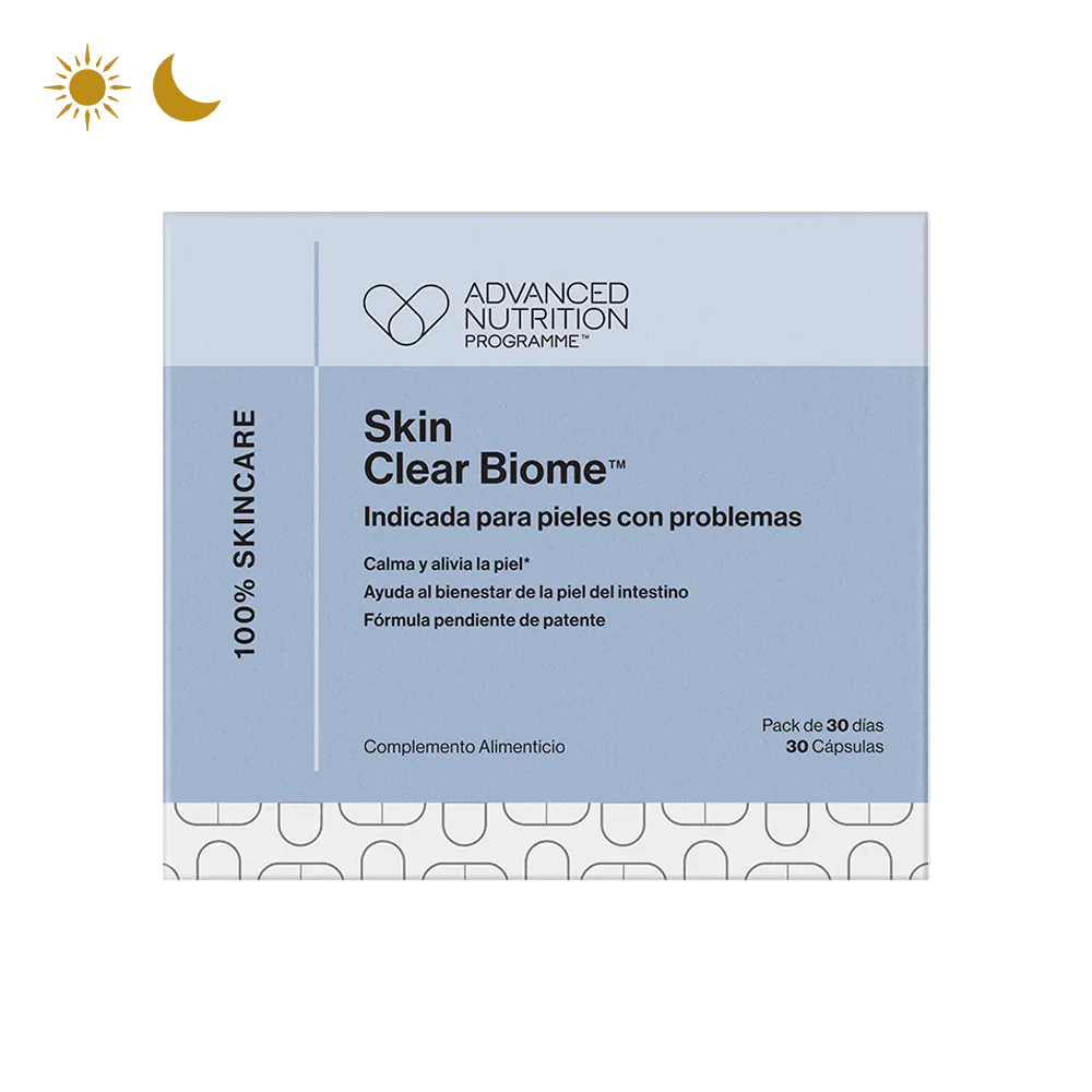 Skin Clear Biome™: Contiene probióticos que equilibran la microbiota y mejoran afecciones como el acné o la rosácea.