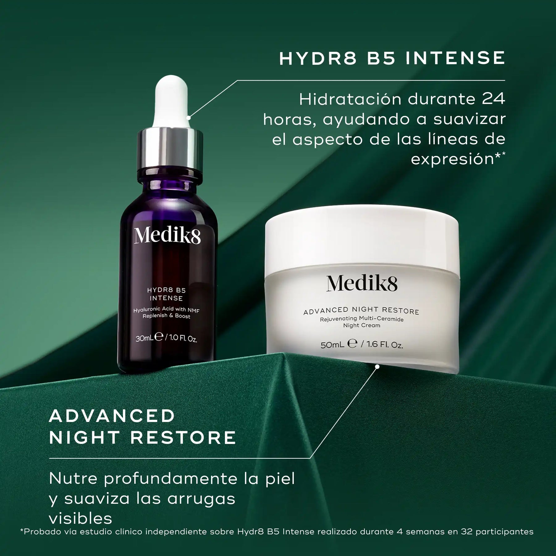 Hydr8 B5 Intense: un suero con ácido hialurónico multipeso, enriquecido con pantenol y factores naturales de hidratación, que envuelve la piel en una malla de humedad. Su tecnología permite retener agua en múltiples capas cutáneas, alisando las líneas finas y aportando una sensación inmediata de suavidad y firmeza.