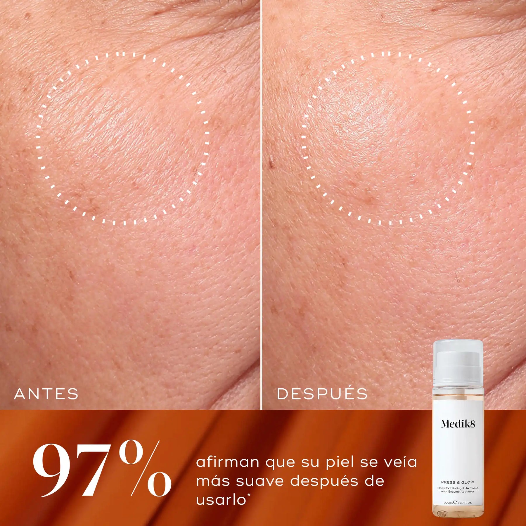 Usados juntos, Press & Glow + Liquid Peptides crean un ritual diario especialmente diseñado para: